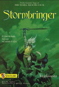 L’aria era acre e lo stridore delle unghie delle tigri sul pavimento di metallo lacerava le orecchie di Talben. Lothar, il comandante della guardia cittadina, arrestò il cocchio trainato dalle tigri di fronte ad un’imponente edificio sgraziato e orribile a vedersi, costellato di statue perennemente ferme in una smorfia di agonia, nel silenzio della notte erano udibili perfettamente le urla che sembravano provenire dalle immote figure. – Siamo arrivati cane – ringhiò Lothar mentre strattonava la catena a cui era legato il collo di Talben – questa è la tua nuova casa, sii felice! Scoprirai presto che la morte non è la cosa peggiore che ti possa capitare, questo è il regalo che fa il Teocrate ai suoi nemici – Ridendo strattonò il povero sventurato che supplicando veniva trascinato oltre le alte porte di ferro che si stavano aprendo con un sinistro cigolio. Prima di iniziare questo nuovo articolo della Ludoteca, colgo l’occasione di fare i miei migliori auguri di buon anno a tutti i lettori, sperando che questo nuovo anno sia pieno di soddisfazione magari anche ludiche. Tornando ora alla nostra Copertinarubrica il GdR di cui parleremo oggi è ambientato nell’universo creato da Michael Moorcock, non casualmente all’inizio del nuovo anno parliamo di un autore che ha rivoluzionato il Fantasy moderno, infatti prima dell’avvento del ciclo dell’Eroe Eterno, il Fantasy tradizionale aveva come riferimento gli eroi in lotta per il proprio destino e che muovevano le sorti del mondo a colpi di spada sempre tenendo a mente il proprio fulgido destino che fosse quello di regnare su un trono a lungo bramato, come nel caso di Conan, o quello di salvare qualche nobile principessa o regno dai perfidi intrighi di qualche mago malvagio. Invece l’eroe principale della letteratura di Moorcock, ovvero Elric, è un eroe drammatico che lotta contro un destino segnato fatto di dolorose vittorie e strazianti sconfitte, destino segnato dal gioco delle divinità che muovono gli uomini come pedine. Nel suo dramma Elric uccide il cugino per riprendere il trono che gli spetta con il risultato di essere odiato e scacciato dalla sua stessa gente, uccide per errore il suo unico amore e deve scendere a patti con demoni e divinità malvagie per poter sopravvivere. La sua stessa arma, Stormbringer, non è al suo servizio ma anzi dentro di essa è racchiuso uno dei demoni più potenti dell’intero multiverso e per essere controllata costringe Elric ad assumere erbe ed elisir che gli diano la forza di volontà per dominarla. Il mondo stesso in cui sono narrate le vicende non è bianco e nero, come nelle più classiche saghe, ma anzi è un coacervo di passioni legate alle sorti che gli dei della Legge e del Caos hanno in serbo per i suoi abitanti, passioni laceranti che spesso sono rispecchiate da tragedie e Elricguerre senza fine fra i vari regni liberi dal giogo del Fulgido Impero. In questo universo che in realtà è uno dei molti universi, come lo stesso Moorcock spiega, è ambientato il nostro gioco di oggi. La prima edizione di Stormbringer fu edita nel 1981 dalla Chaosium a cura di Ken St. Andre. Il gioco vide un rapido susseguirsi di ristampe, una nel 1985 e una nel 1987, che non portavano sostanziali modifiche al gioco originale del 1981, poi nel 1990 fu pubblicata la 4th edizione con un regolamento magico riveduto e corretto, questa versione fu tradotta nel 1993 dalla Stratelibri con un Art Director di tutto rispetto come Paolo Parente, che ricordo essere l’autore di numerose illustrazioni per GdR tra cui Mutant Chronicles e Chronopia. Nel 1993 fu pubblicato Elric! una versione di Stormbringer riveduta nel regolamento, infine nel 2001 la Chaosium pubblica la 5th e ultima versione utilizzando come base Elric! Nel 2007 infine la Chaosium cessa di produrre il gioco che vede una sua reincarnazione nell’agosto sempre del 2007 ad opera della Mongoose Publishing con il nome di Elric of Melniboné RPG realizzato da Lawrence Whittaker basandosi sulle regole di RuneQuest.